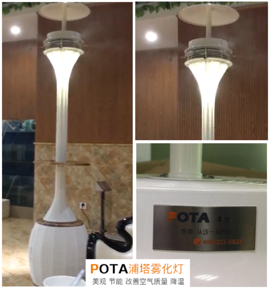 据介绍,其实市民看到的这些能喷雾的“ 神奇物品 ” ,都是一种降温系统,浦塔降温系统活性干雾机可以起到类似于空调的降温用,水通过雾化降温系统,以极细微雾化状态喷出, 在汽化过程中吸收大量的热量,从而达到快速降温的作用,一般能使覆盖范围内的气温直降3-5℃ 。喷嘴产生直径为微米级的雾滴,在空气中弥散,因雾滴很小,对市民身体不但没有任何影响。还明显的有降温、降尘、清新空气、提高人体舒适度的作用,给人们带来清凉舒适。